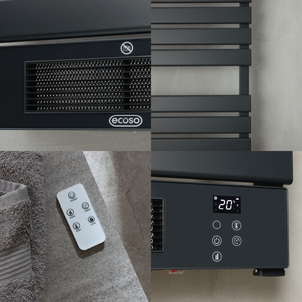 ECOSO Linus - Smart Wi-Fi Electric Heated Towel Rail with Fan - Choice of Size and Finish