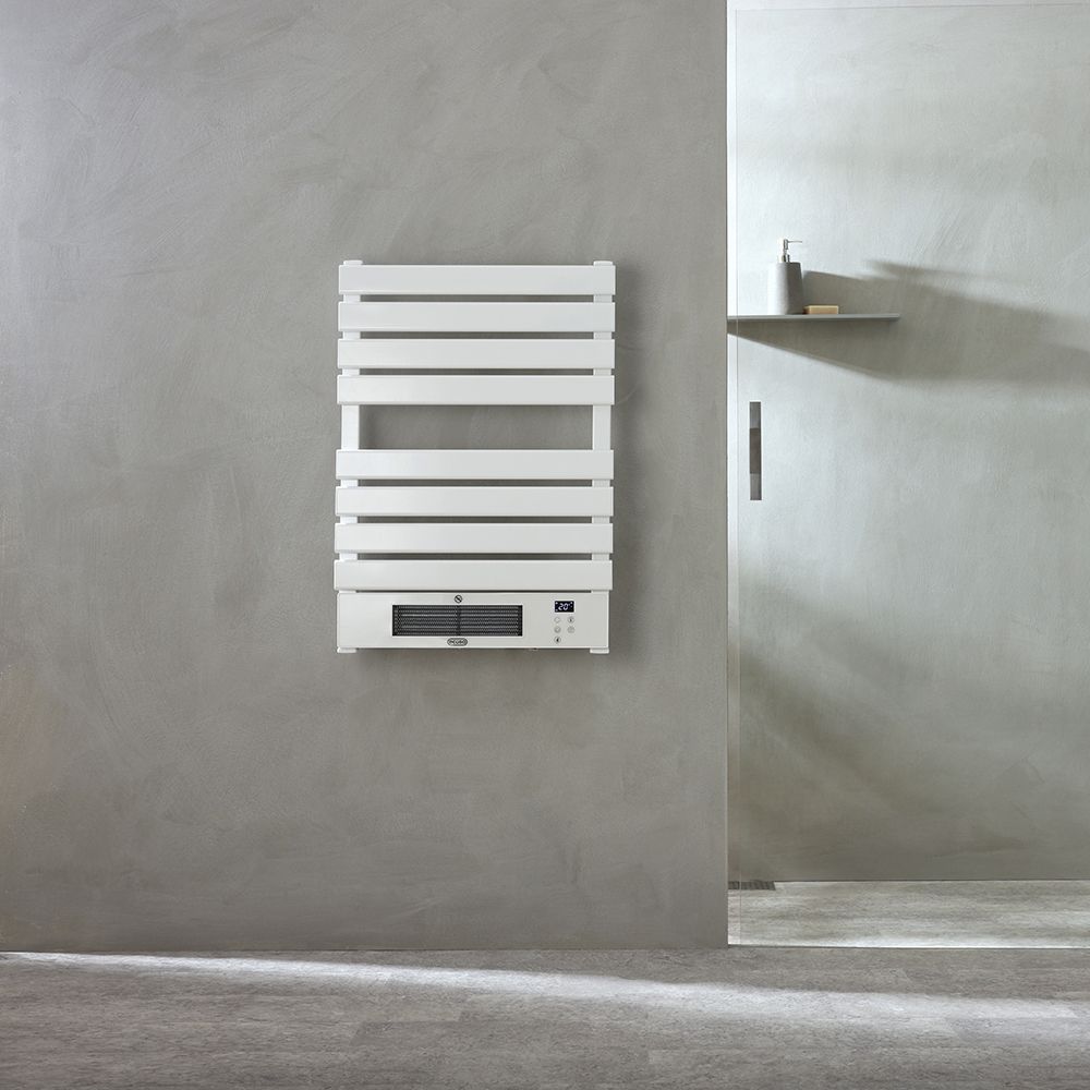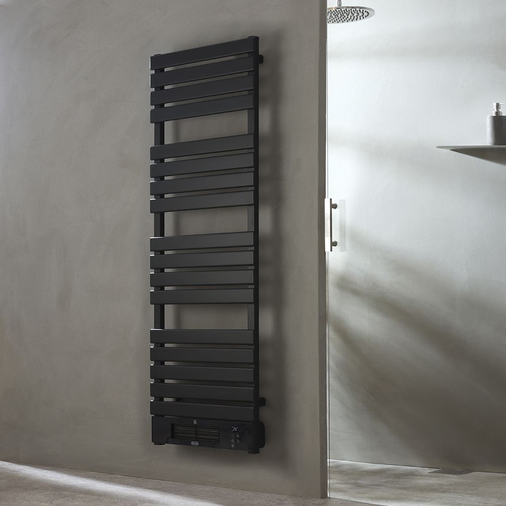 Create a sleek, modern look and enjoy toasty warm towels with the ECOSO Linus Wi-Fi electric heated towel rail with fan. This stylish electric towel rail has an integrated fan, giving you a great way to warm up your bathroom, while the flat bars offer ample space for your towels.