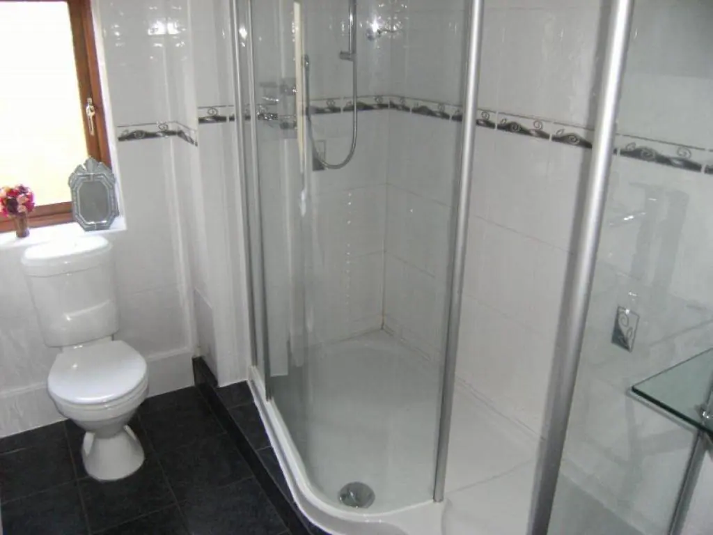 • Tiled floor with step to shower and basin