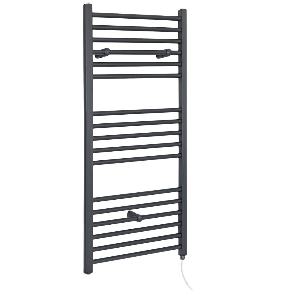 Milano Artle Electric - Anthracite Straight Heated Towel Rail - 1200mm x 500mm