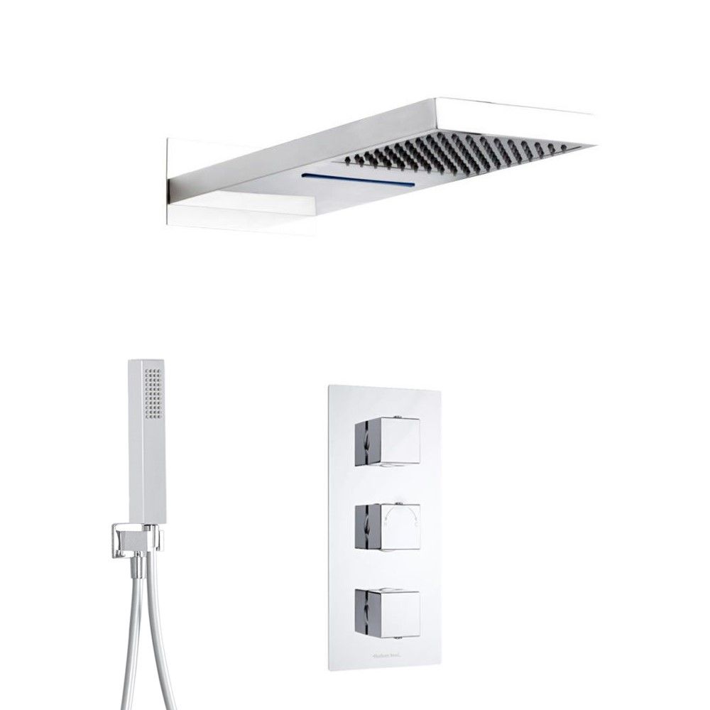 Milano Arvo - Chrome Thermostatic Shower with Diverter, Waterblade Shower Head and Hand Shower (3 Outlet)