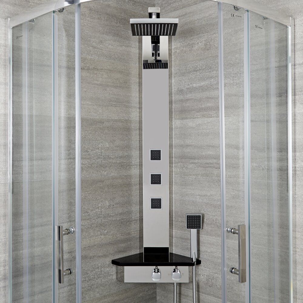 Made from premium quality stainless steel for long-lasting durability, this stylish shower panel features a space-saving corner design, making it a great choice for smaller bathrooms and en-suites. It uses thermostatic temperature control, giving you a safe and comfortable shower every time. What’s more, it incorporates a handy shelf, so you can keep your showering essentials within easy reach.