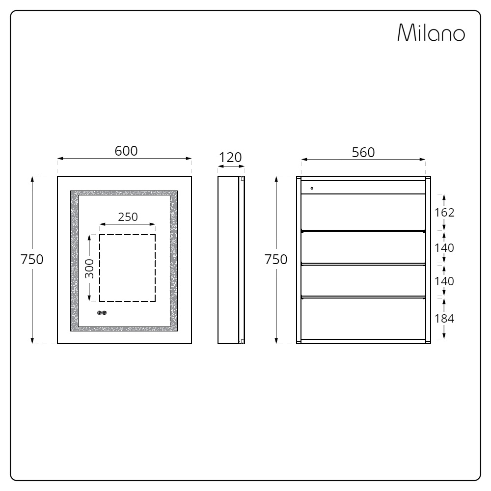 - Dimensions: W 600mm x D 120mm x H 750mm
