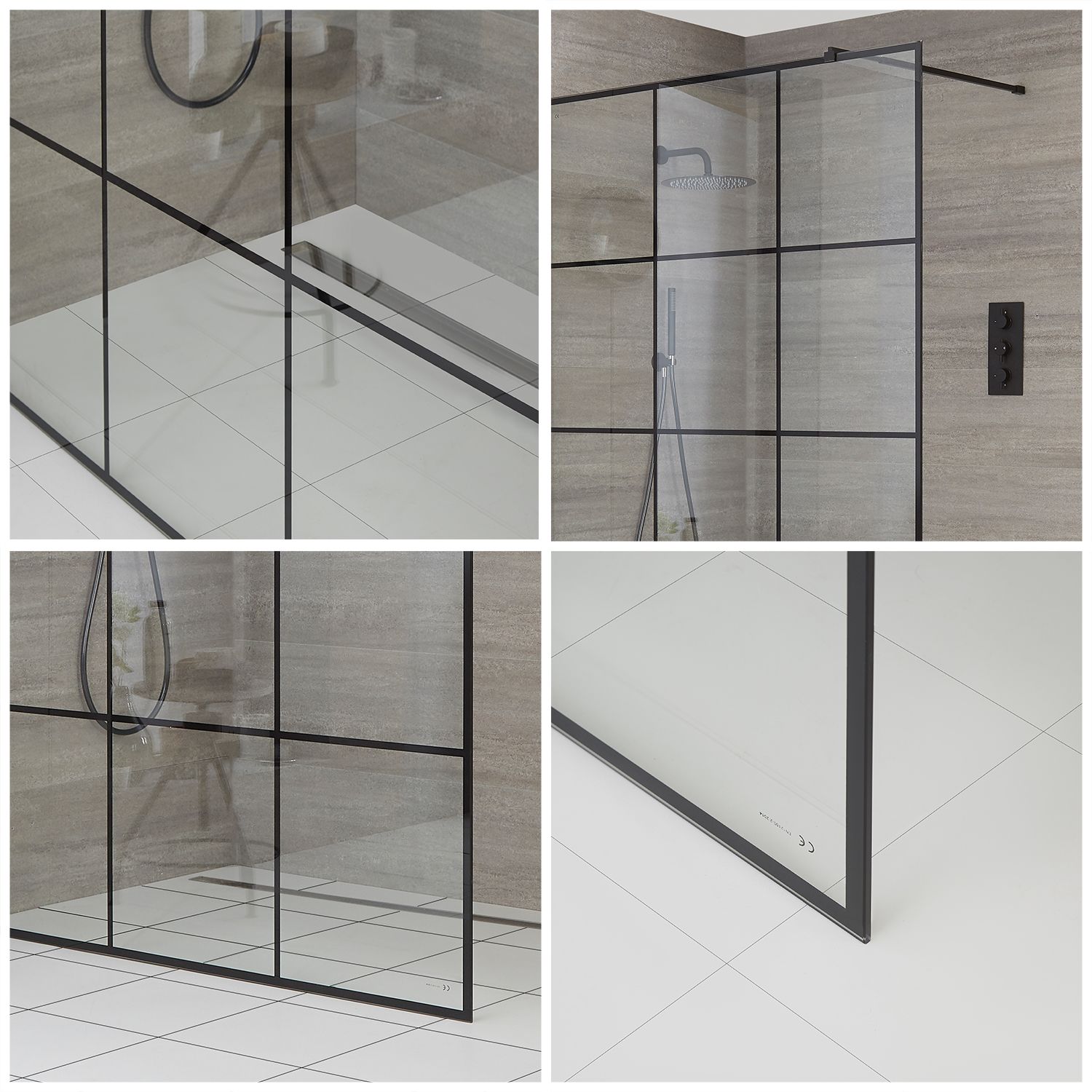 Measuring 1950mm in height to contain more shower splashes, the wet room shower features a black grid pattern design, providing your bathroom with a stylish focal point. The black grid has been printed on to the outside of the glass, which makes cleaning easier. The screen uses 8mm toughened safety glass to ensure superb strength and durability.