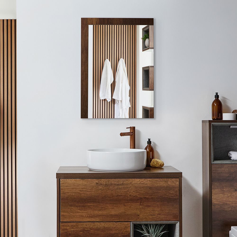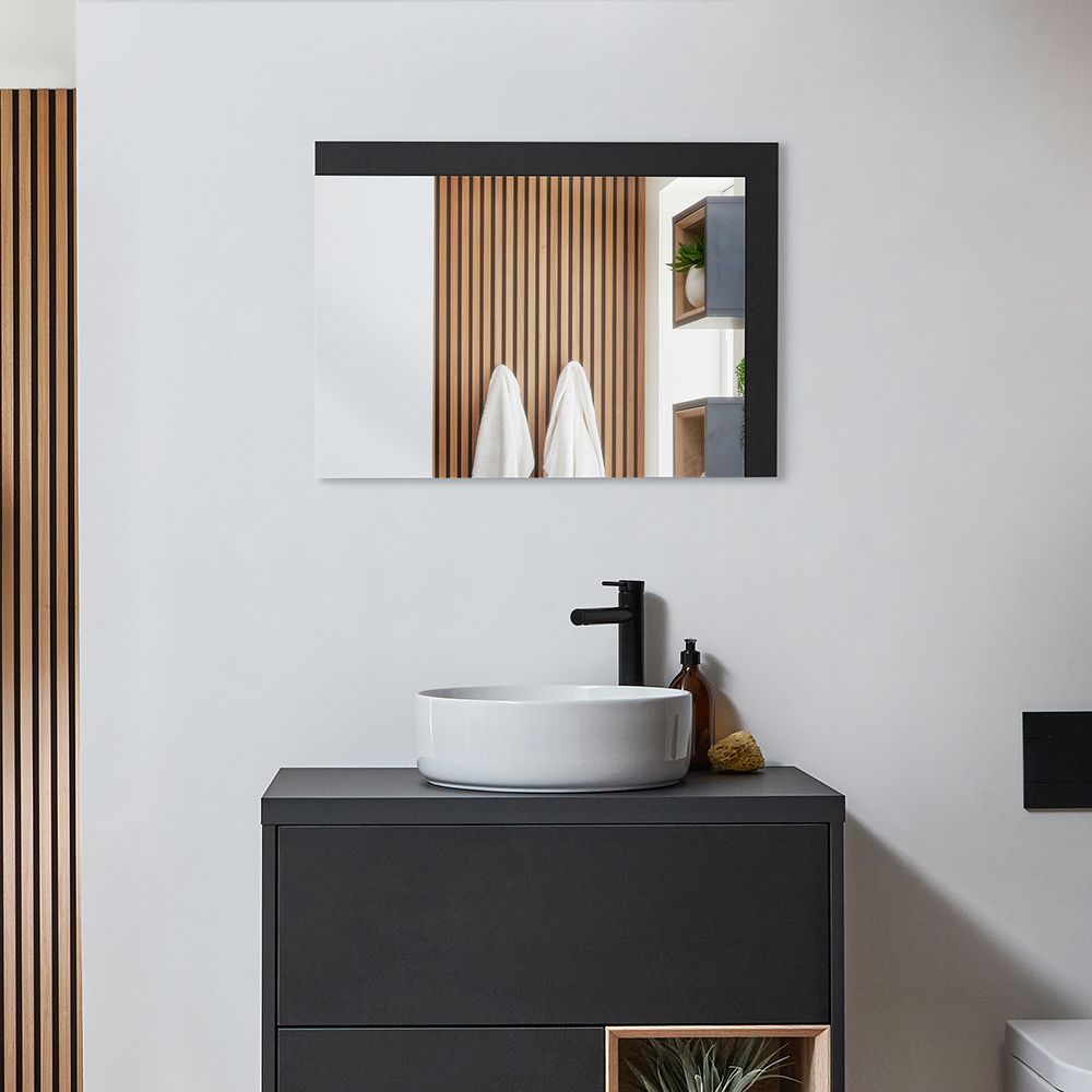 This bathroom wall mirror features a minimal and contemporary framed design for an eye-catching look. Create a striking and perfectly coordinated look by pairing this bathroom mirror with one of the matching Bexley vanity units.