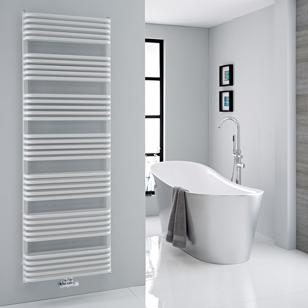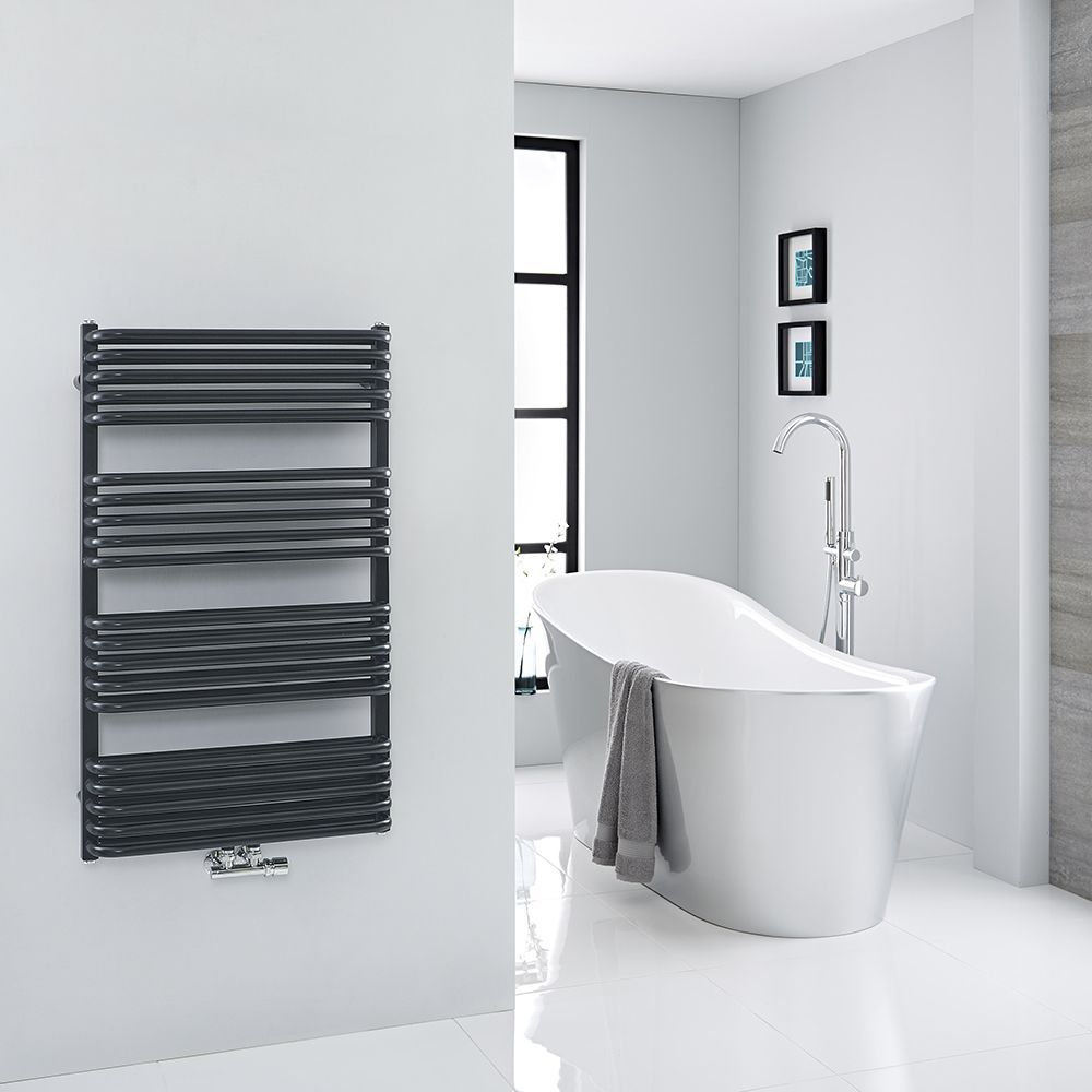 Elevate your modern bathroom and enjoy toasty warm towels with the Milano Bow d-bar heated towel rail.
