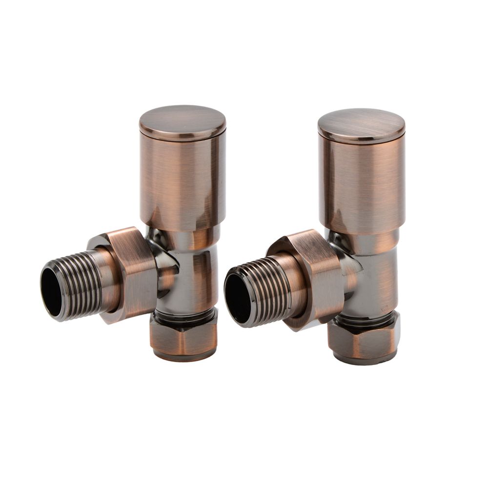 Enhance the design of your modern radiator or heated towel rail with this pair of Milano brushed copper angled radiator valves.