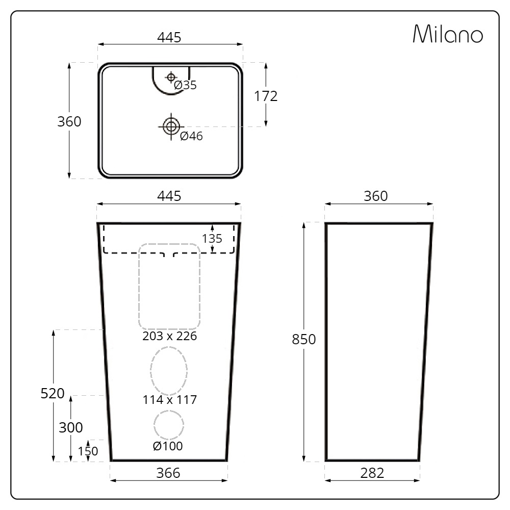 - Dimensions: W 445mm x D 360mm x H 850mm