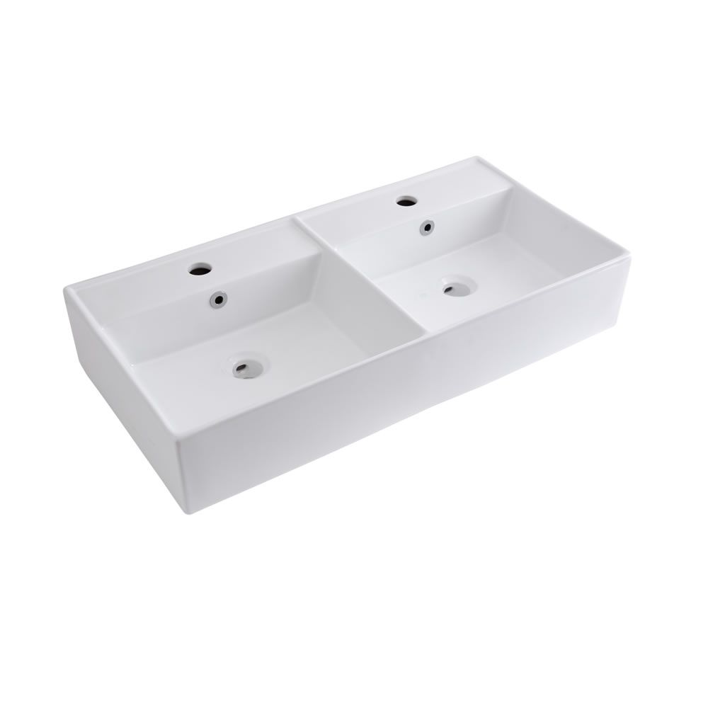 Milano Dalton - White Modern Double Rectangular Countertop Basin - 820mm x 420mm (2 Tap-Holes)