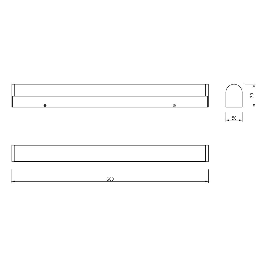 - Dimensions: 600mm x 70mm x 50mm