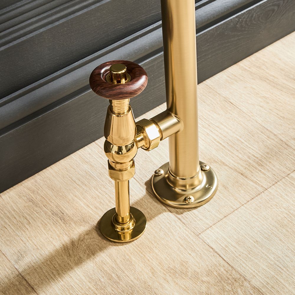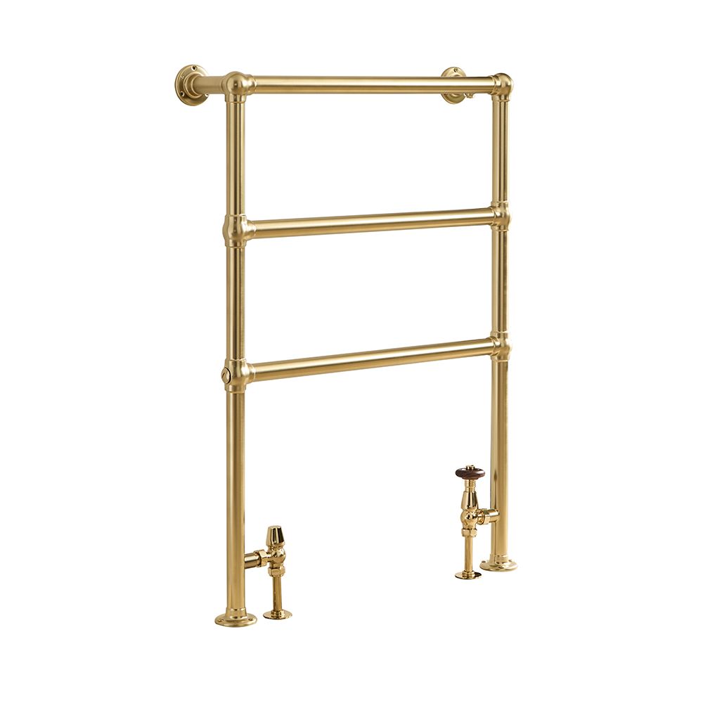 Bring a stunning vintage feel to your bathroom with the Milano Derwent 966mm x 673mm brushed brass traditional heated towel rail.