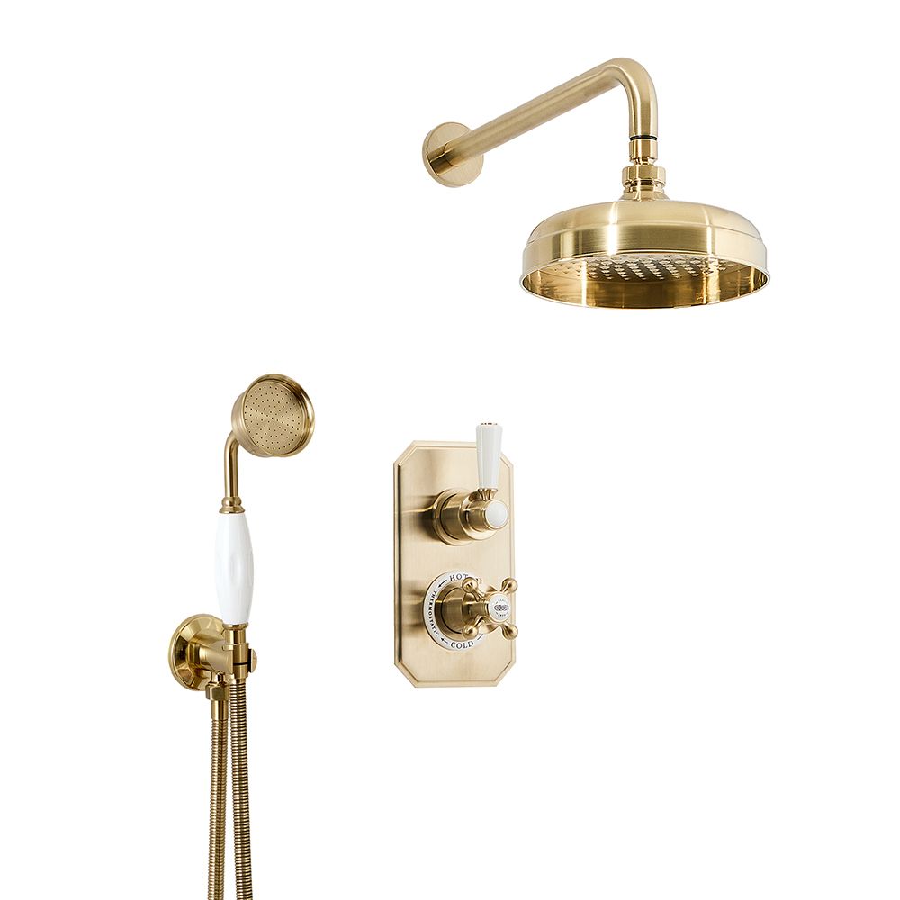 Milano Elizabeth - Brushed Brass Traditional Thermostatic Shower with Diverter, Hand Shower and Shower Head (2 Outlet)