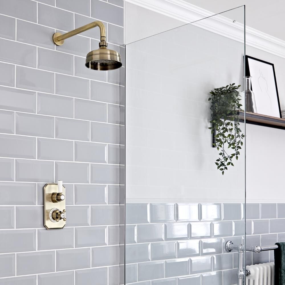 Bring a touch of luxury and traditional elegance to your bathroom with the Milano Elizabeth 150mm apron shower head, complete with wall-mounted arm.