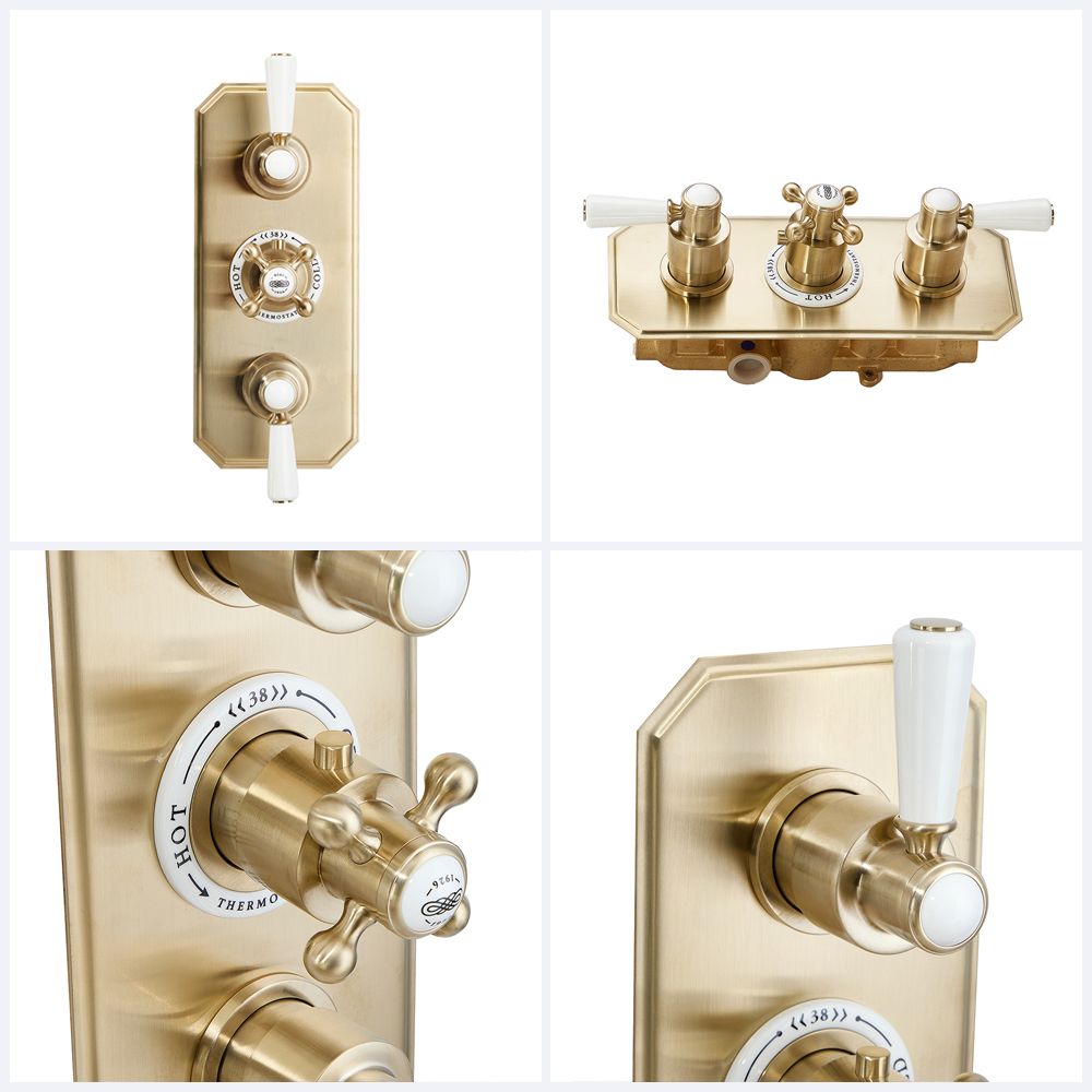 Milano Elizabeth - Traditional Concealed Thermostatic Triple Shower Valve - Brushed Brass