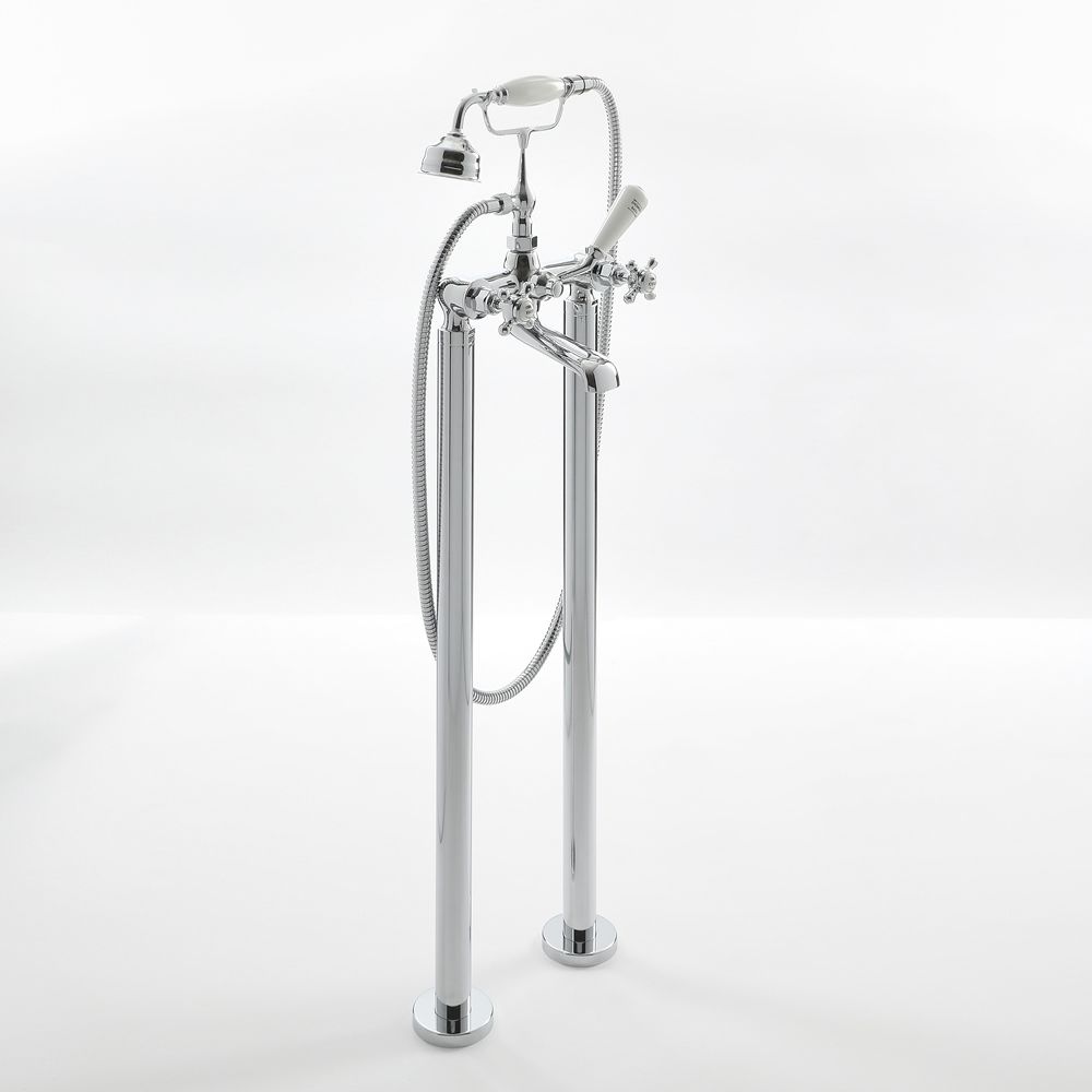 Milano Elizabeth - Traditional Freestanding Crosshead Bath Shower Mixer Tap with Hand Shower - Chrome and White