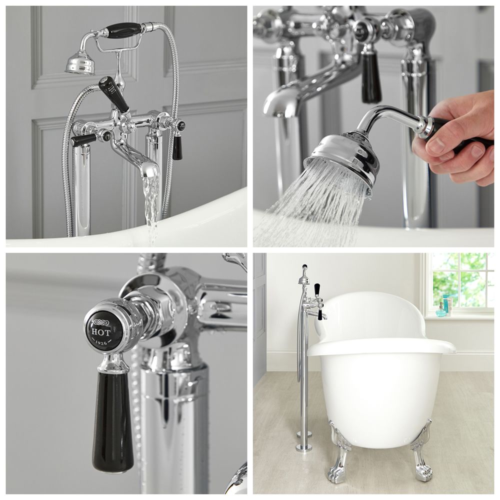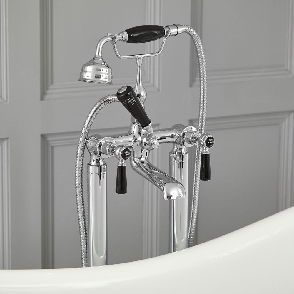 Milano Elizabeth - Traditional Freestanding Lever Bath Shower Mixer Tap with Hand Shower - Chrome and Black