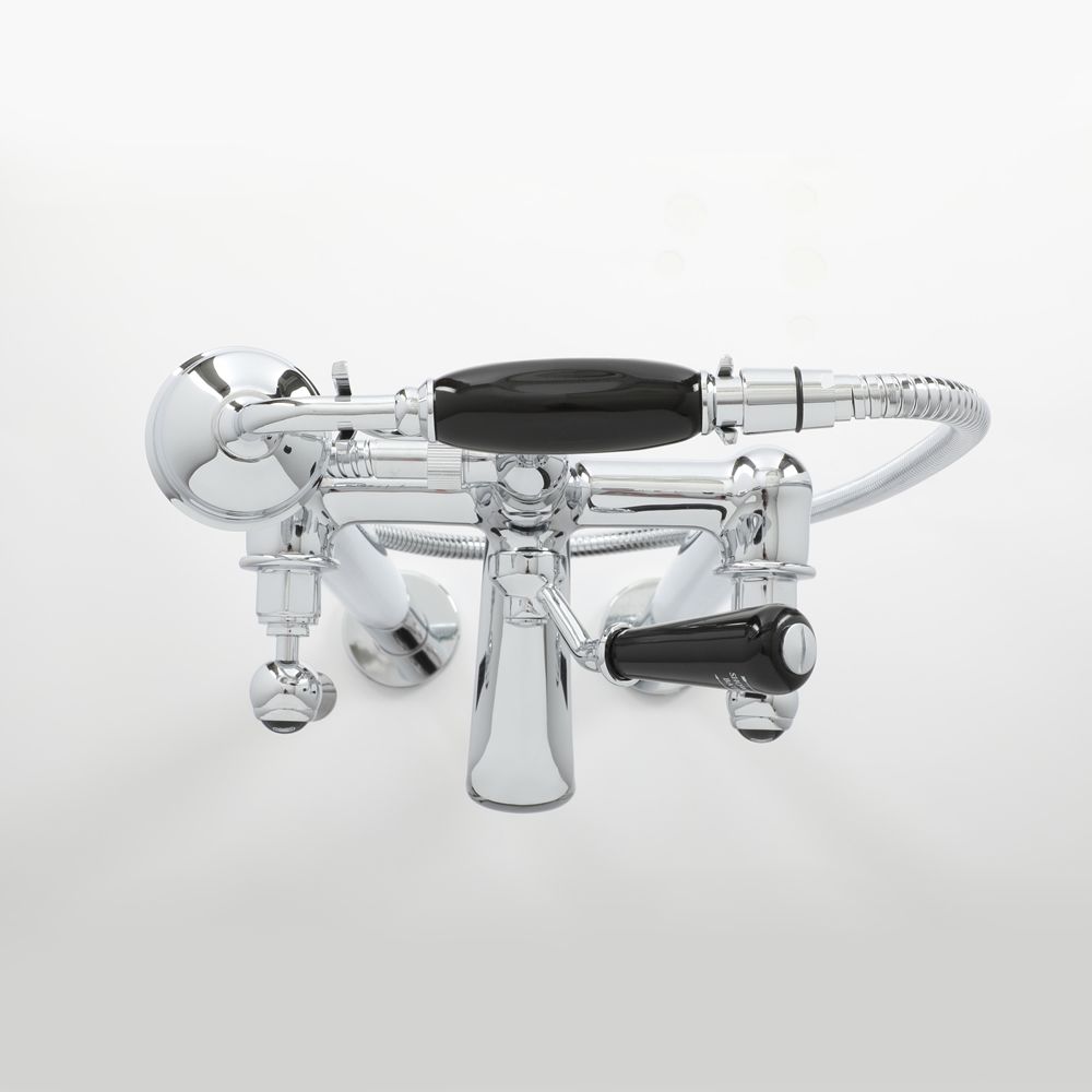 Featuring a timeless design and a chrome and black finish, this freestanding bath shower mixer tap has been crafted from solid brass, so you can be assured of quality and durability.
