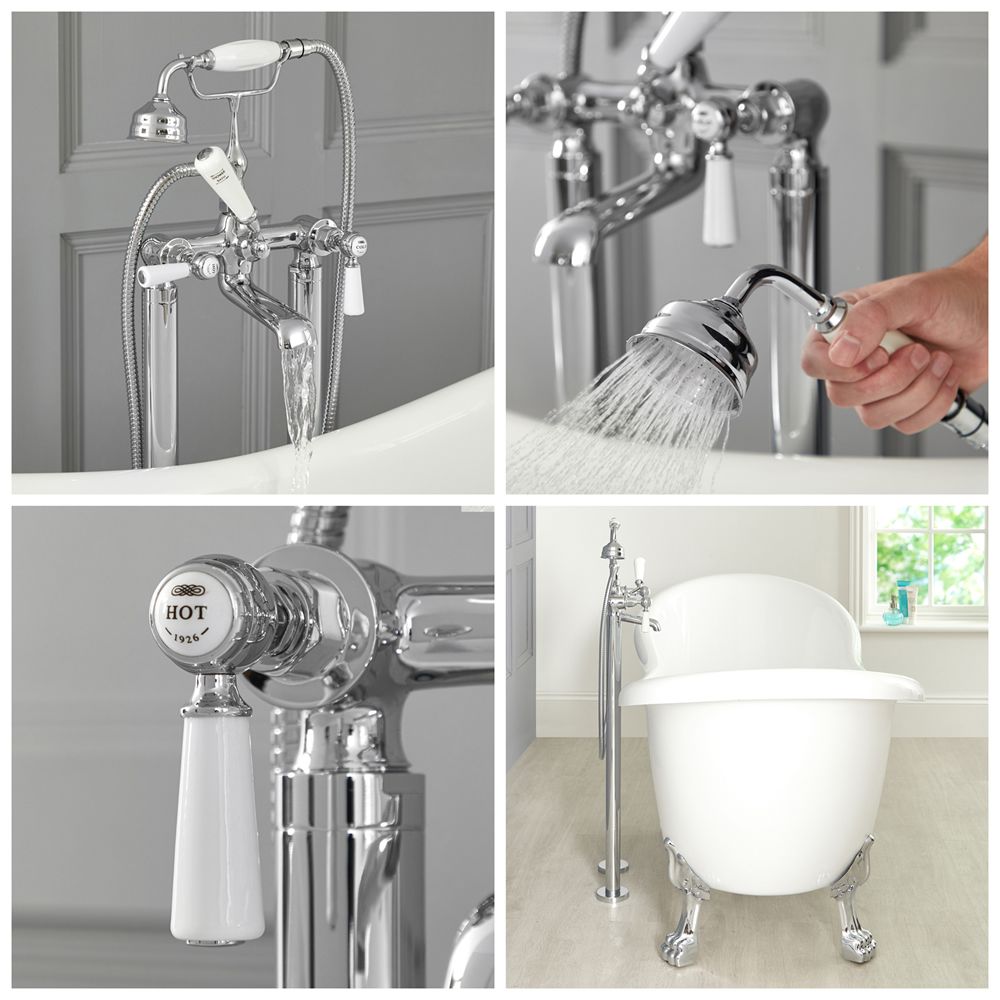 Milano Elizabeth - Traditional Freestanding Lever Bath Shower Mixer Tap with Hand Shower - Chrome and White