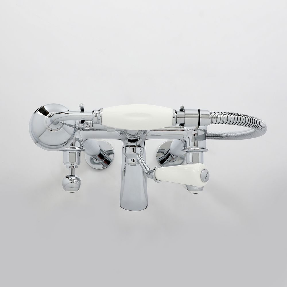 Crafted from solid brass for guaranteed durability, this bath shower mixer tap features stylish white ceramic lever handles, which provide effortless control, and an elegant design that will never go out of fashion. The hard-wearing chrome finish complements any bathroom decor.