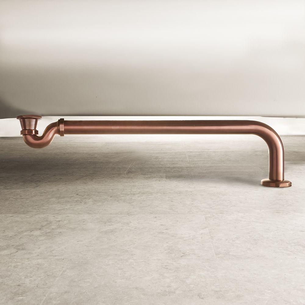 The Milano Elizabeth brushed copper shallow seal bath trap and outlet pipe has been designed for use with a freestanding bath where the pipework is exposed.