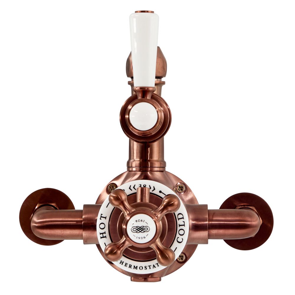 Further enhance your vintage style bathroom with the Milano Elizabeth brushed copper twin thermostatic shower mixer valve.