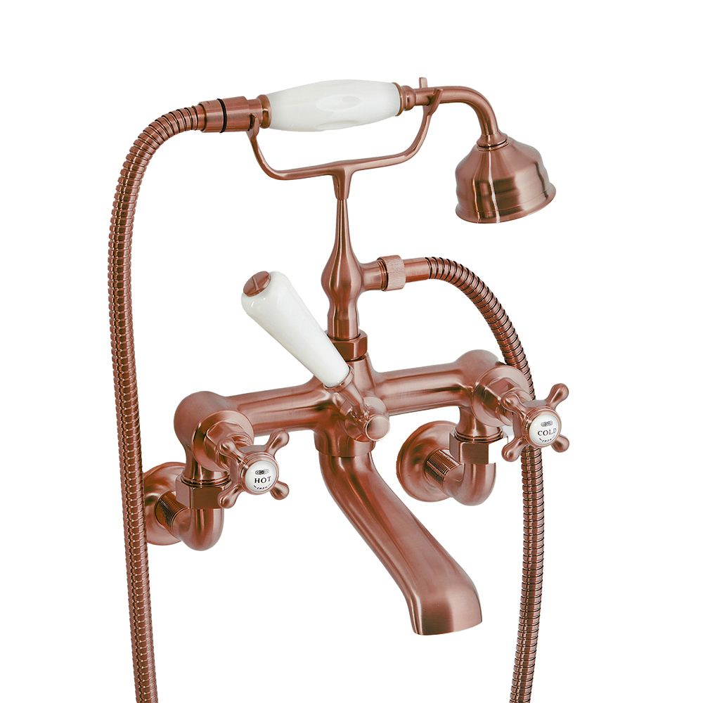 Milano Elizabeth - Traditional Wall Mounted Crosshead Bath Shower Mixer Tap - Brushed Copper