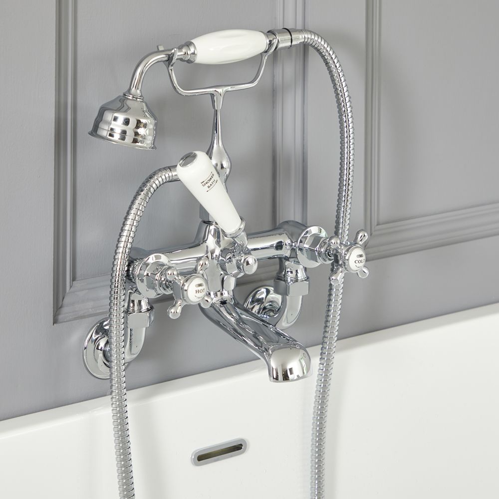 Create a luxurious and elegant look with the Milano Elizabeth wall-mounted crosshead bath mixer tap with shower.