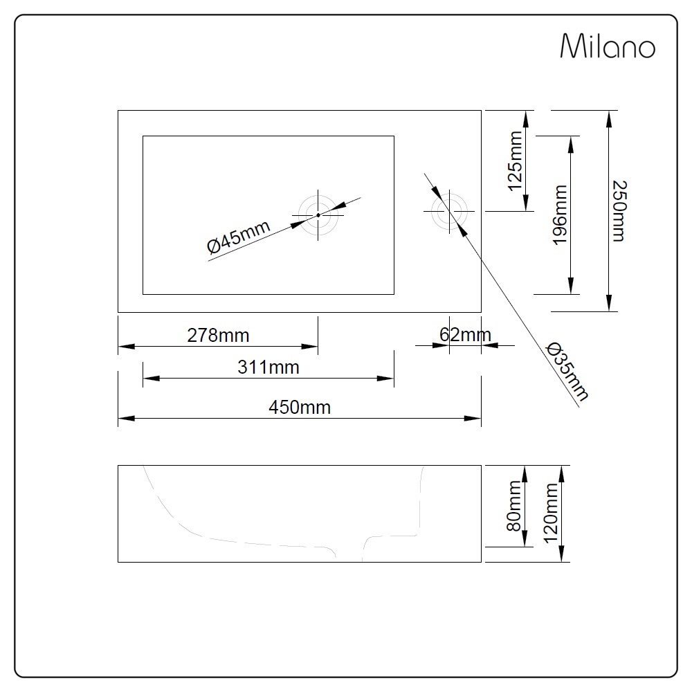 - Dimensions: W 450mm x D 250mm x H 120mm