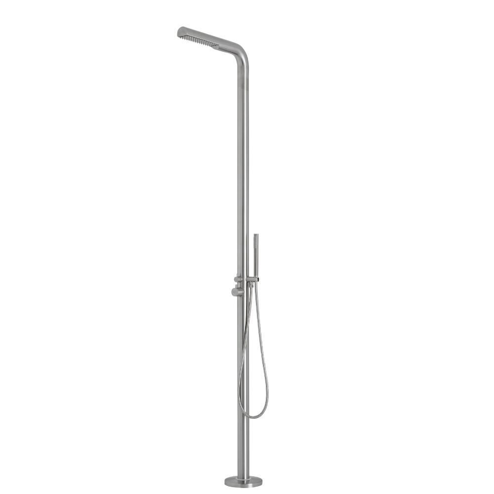 Milano Lugo - Brushed Steel Outdoor Shower with Shower Head and Hand Shower (2 Outlet)