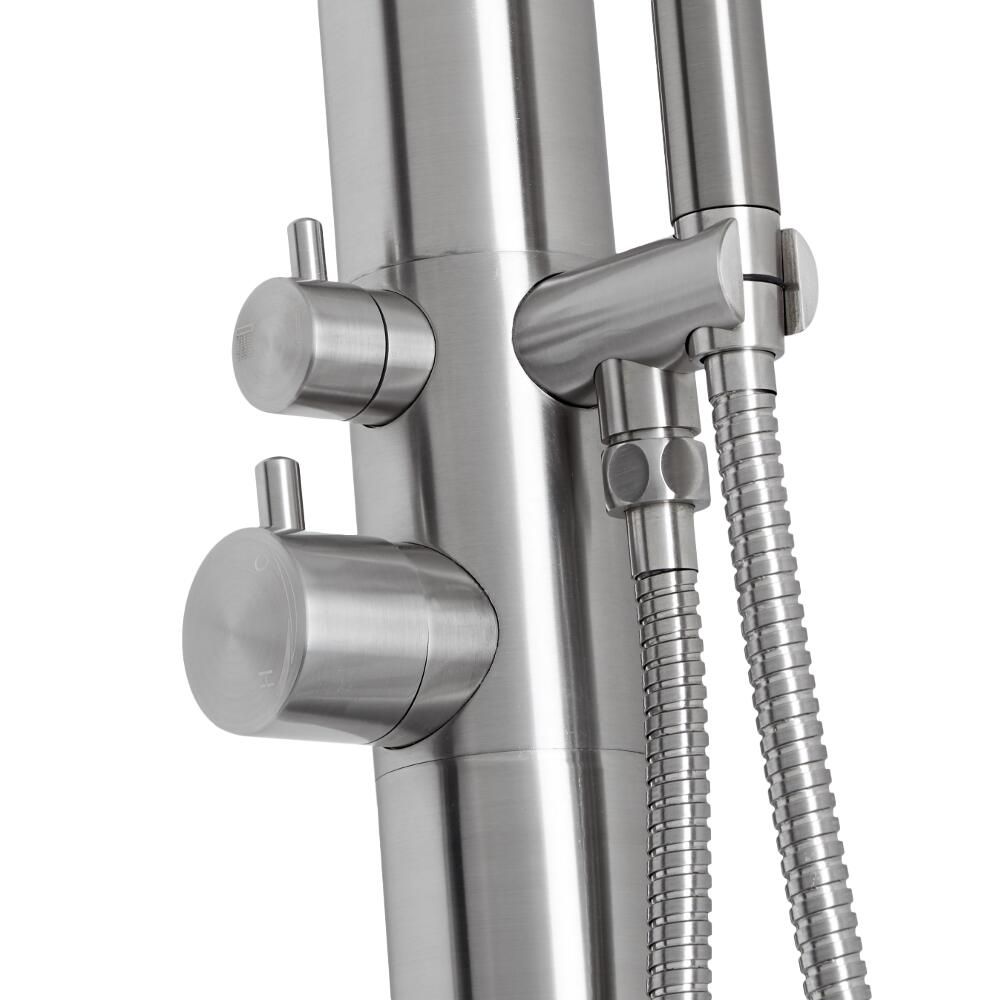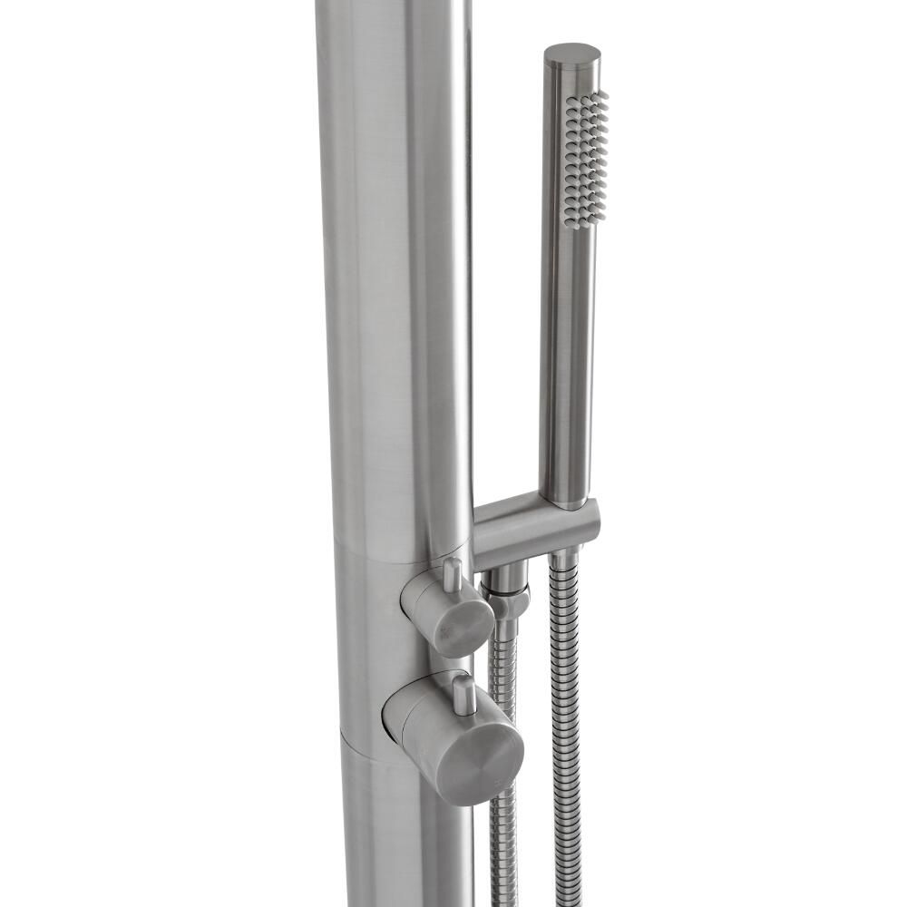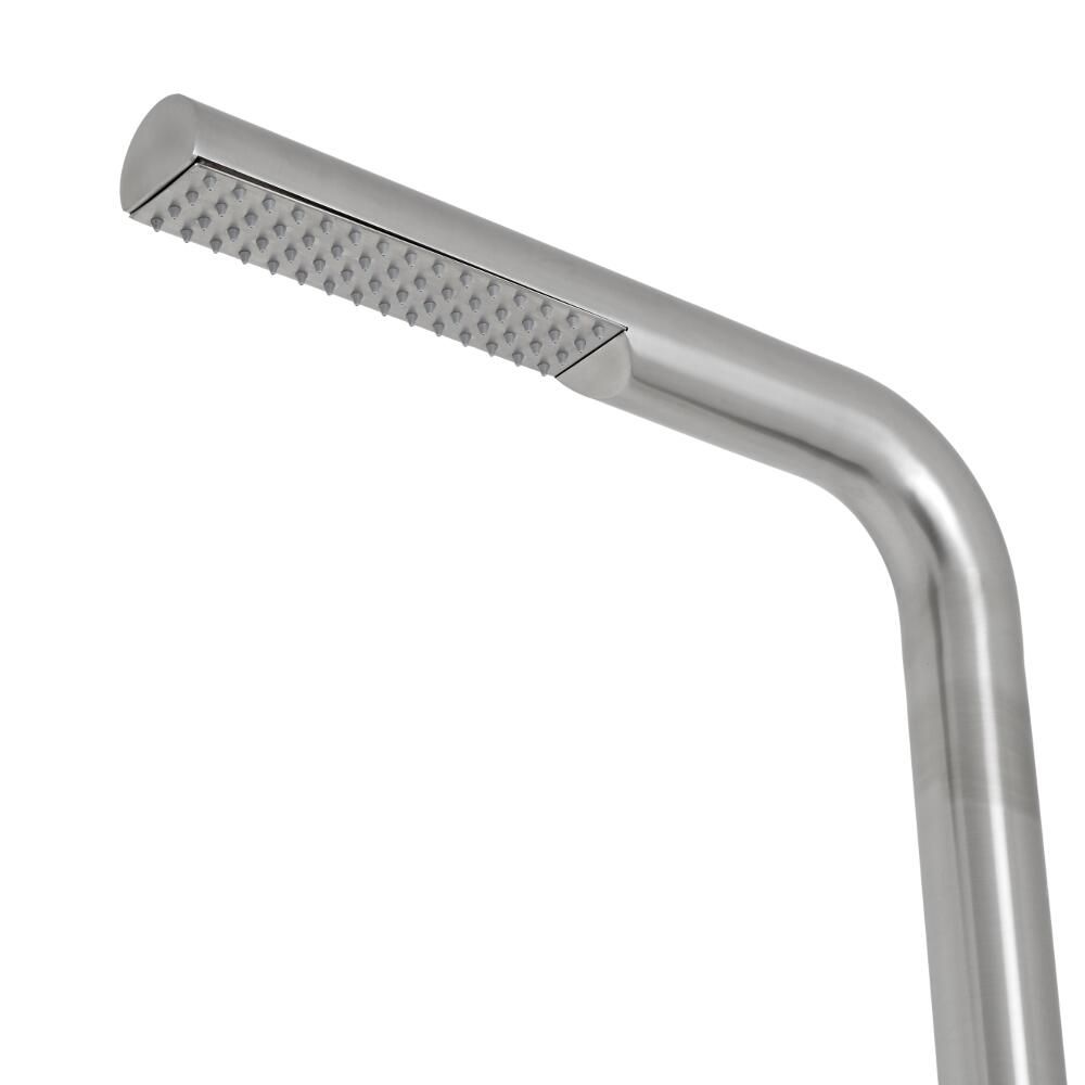 Featuring a brushed effect finish and sleek contemporary looks, this outdoor shower delivers a refreshing showering experience. Providing effortless control over, it incorporates a sleek shower head and a hand shower with hose.