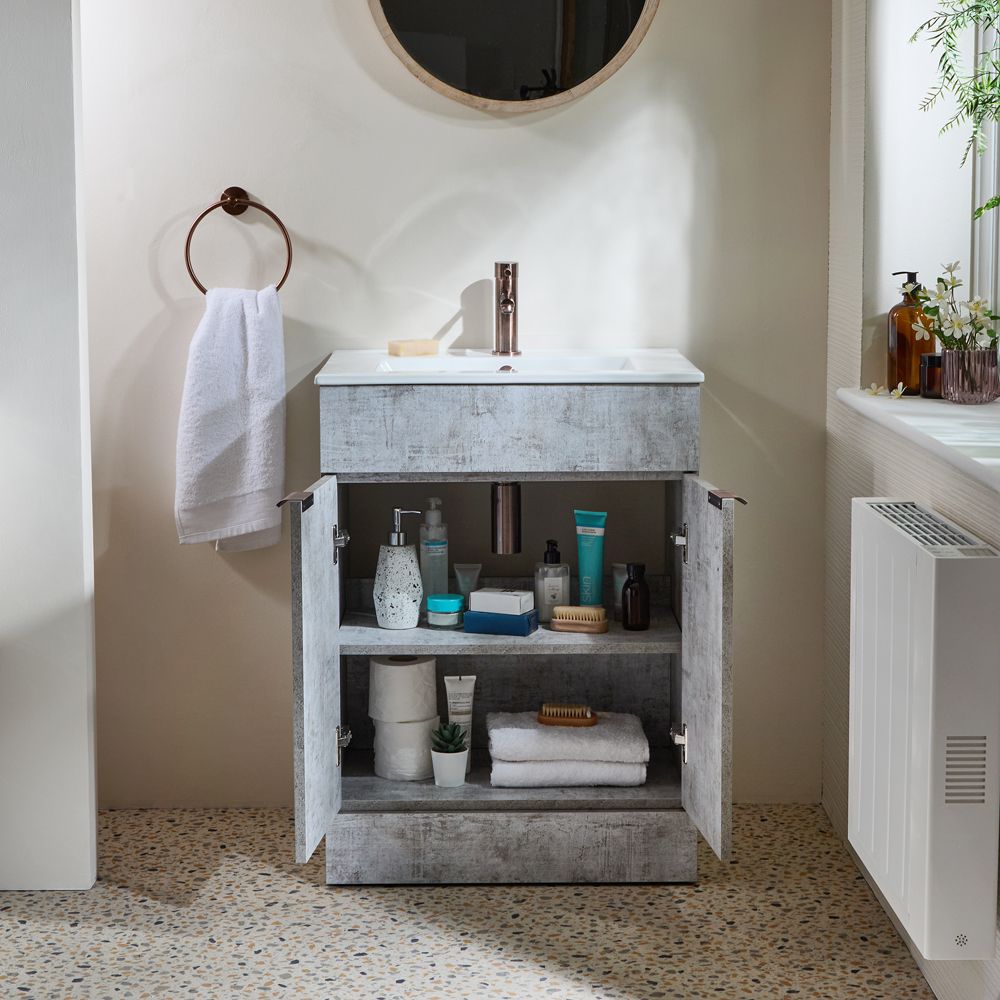 Featuring a modern design, this vanity unit gives you ample storage space for your bathroom essentials. It also uses soft close hinges to prevent the doors from slamming shut and helping to reduce wear and tear too.