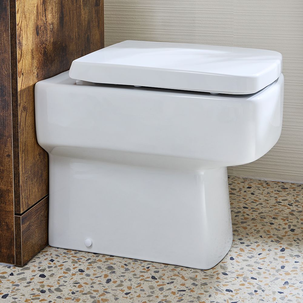 - Hard-wearing ceramic toilet with easy to clean white glazed enamel finish