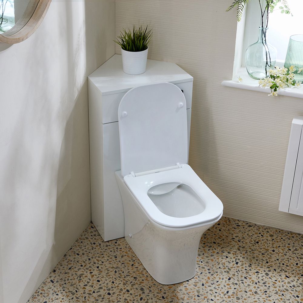 Maximise space in your small bathroom or cloakroom with the Milano Lurus back to wall corner toilet unit, complete with Avenham toilet, soft close seat and water-saving dual flush cistern.