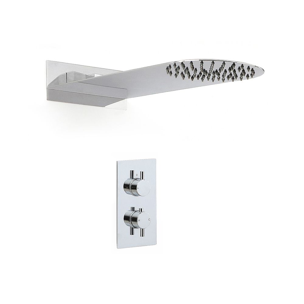 Enjoy a luxurious shower with the Milano Mirage thermostatic mixer shower, complete with shower valve and thin fixed rainfall shower head.