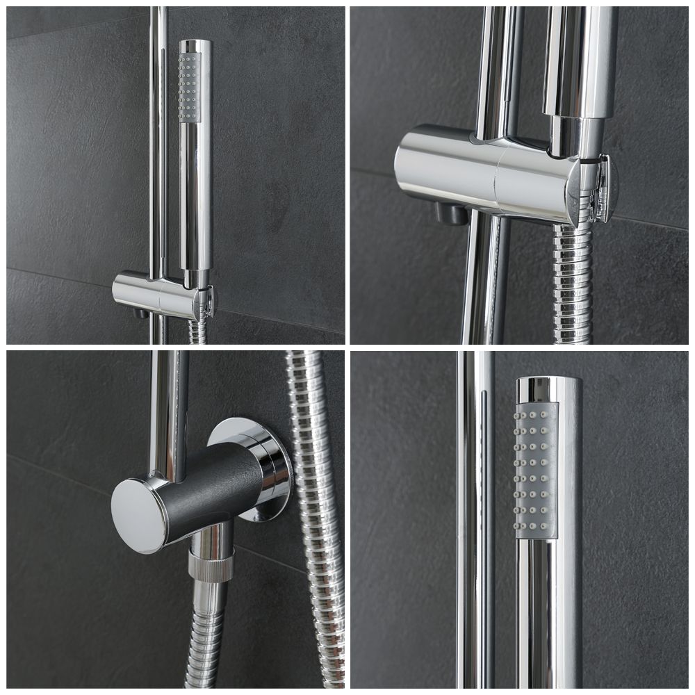 Bring a modern look to your bathroom with the Milano Mirage chrome riser rail kit, complete with hand shower and hose.