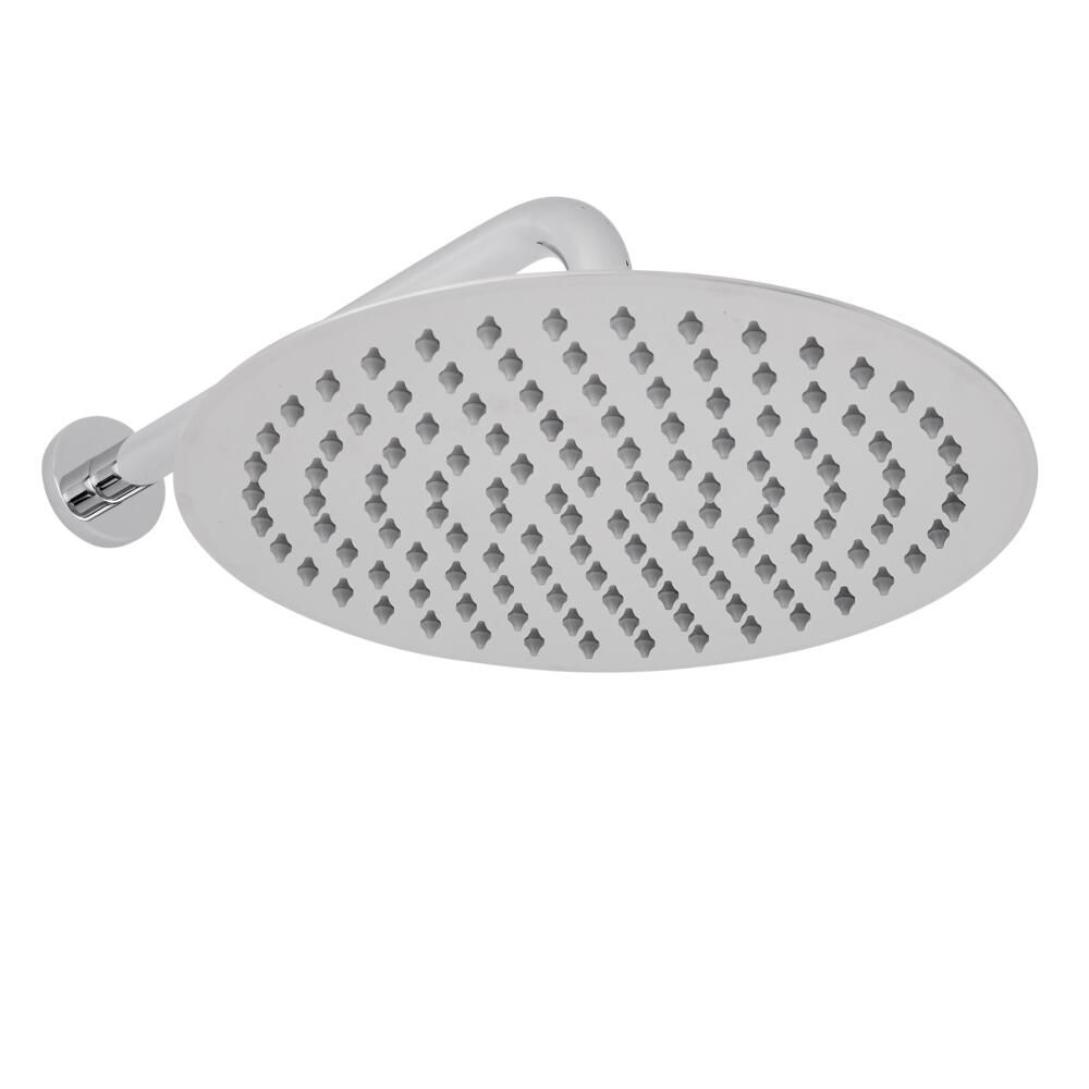 Enhance your modern bathroom and add a touch of designer style with the Milano Mirage 300mm round rainfall shower head, complete with brass wall-mounted arm.