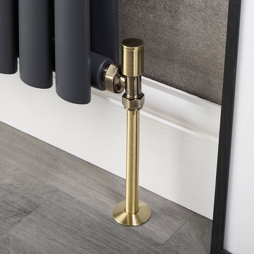 The brushed gold pipe connectors provide a neat connection between the inlet of the radiator valve and the floor. The finish matches the radiator valves for a coordinated look.