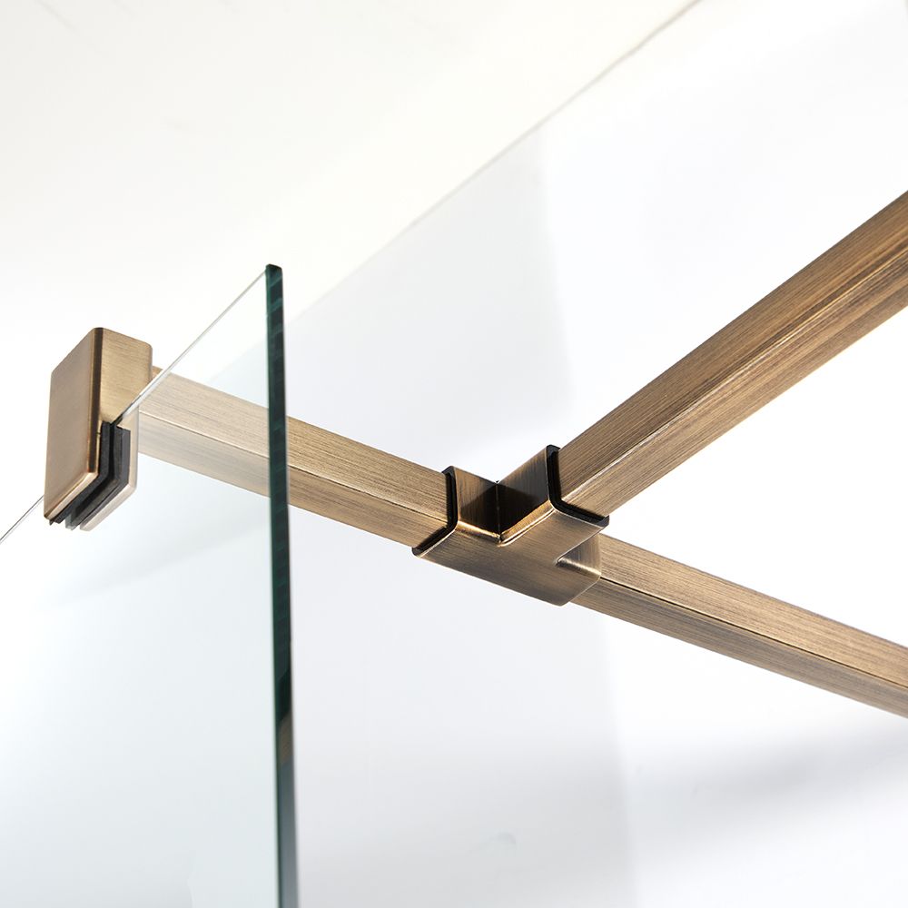 Benefitting from aluminium construction, the modern design square T piece is accentuated by an elegant brushed gold finish and acts to securely fix two screens at right angles to form a stylish enclosure.