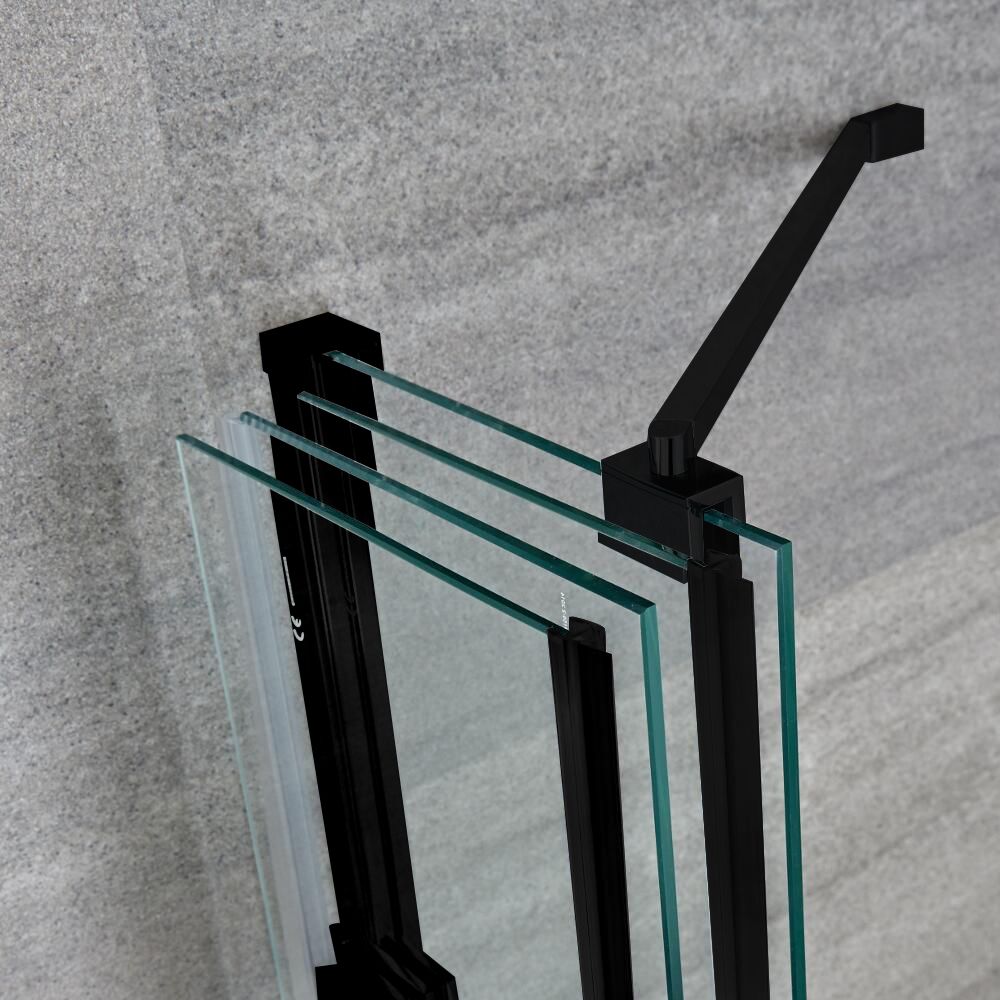 The Milano Nero black folding bath screen provides a stylish and practical way to protect your bathroom floor from spills and splashes when taking a shower.