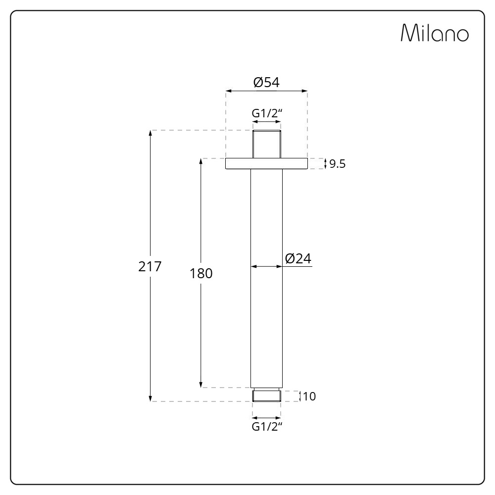 Ceiling mount your rainfall shower head and create a stunning modern look with the Milano Nero black shower arm.