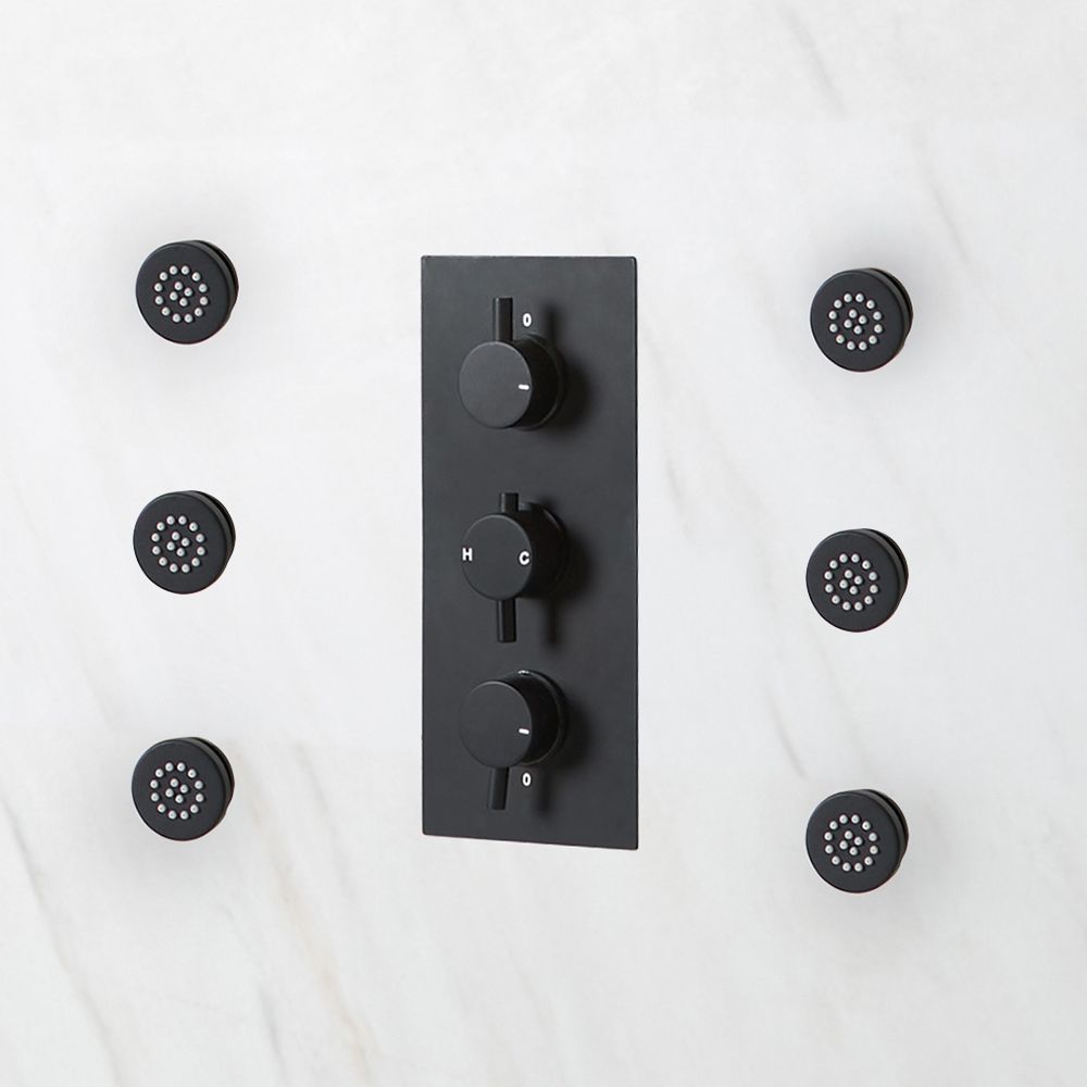 The brass body jets features a matt black powder coated finish for bold and contemporary look. The jets deliver a burst of water to leave you feeling refreshed and invigorated. The body jets have a swivel joint so you can adjust the angle of the spray, while the silicone nozzles allow for the easy removal of any limescale deposits.