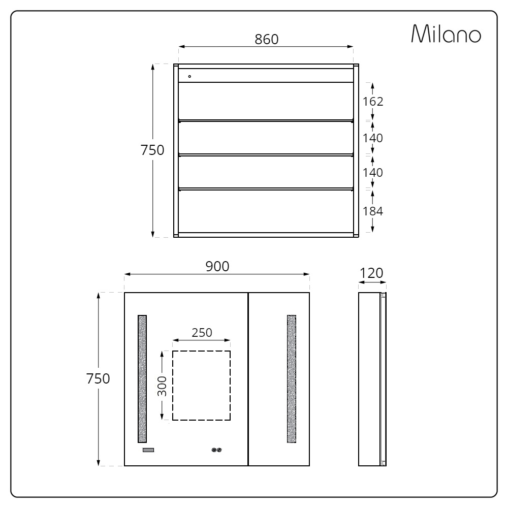 Milano Ossa - Modern LED Mirrored Cabinet - 900mm x 750mm