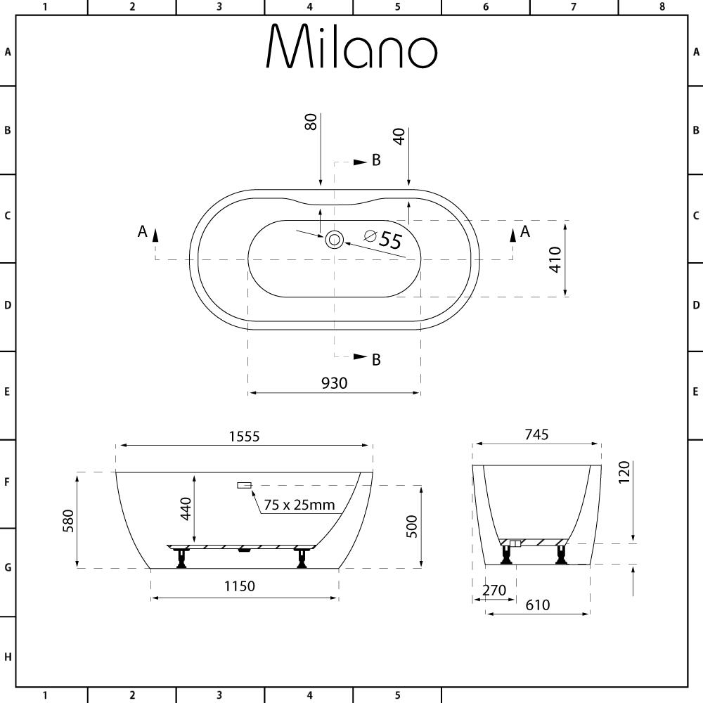 - No tap-holes - suitable for use with wall-mounted or freestanding bath taps only