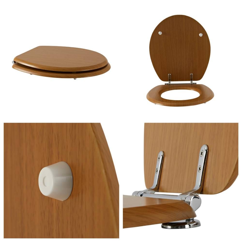 Benefitting from a moisture resistant engineered wood construction with an attractive warm oak effect finish for a classic look, the toilet seat features bottom fix chrome plated bar hinges to withstand the rigours of everyday use and ensure it will last for many years to come.