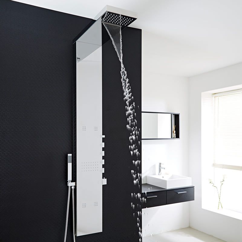Sure to bring a luxury look and feel to your bathroom, this stunning shower tower panel incorporates a large integral shower head with waterfall function, five massaging body jets and hand shower.