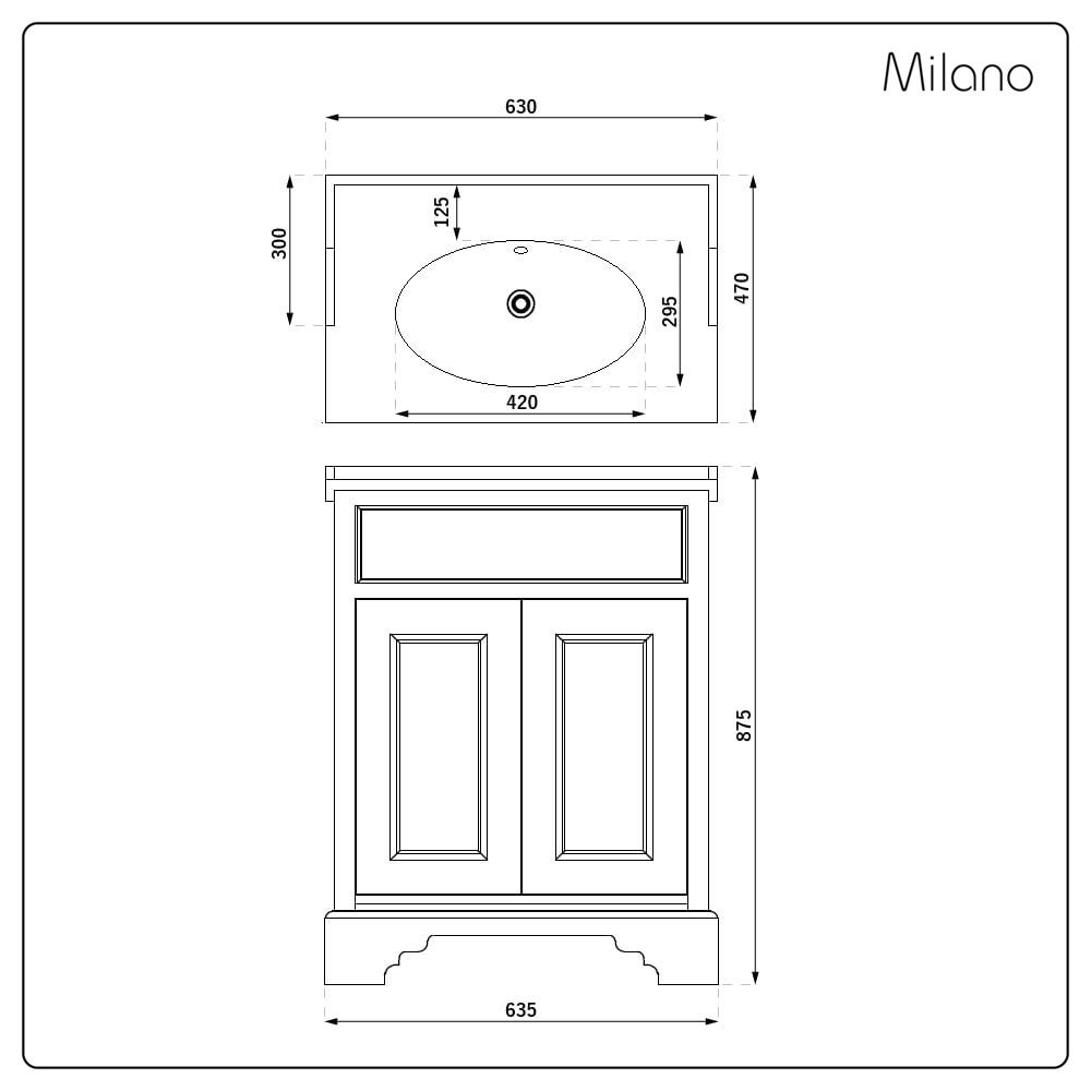 - Basin Dimensions: W 630mm x D 470mm x H 75mm