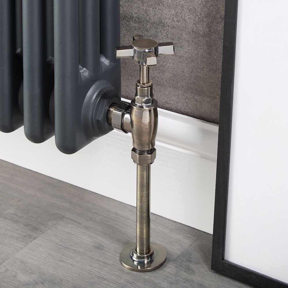 The angled radiator valves feature a timeless design and a dark brushed brass finish for a touch of vintage style. They are suitable for use with all Milano radiators and heated towel rails.