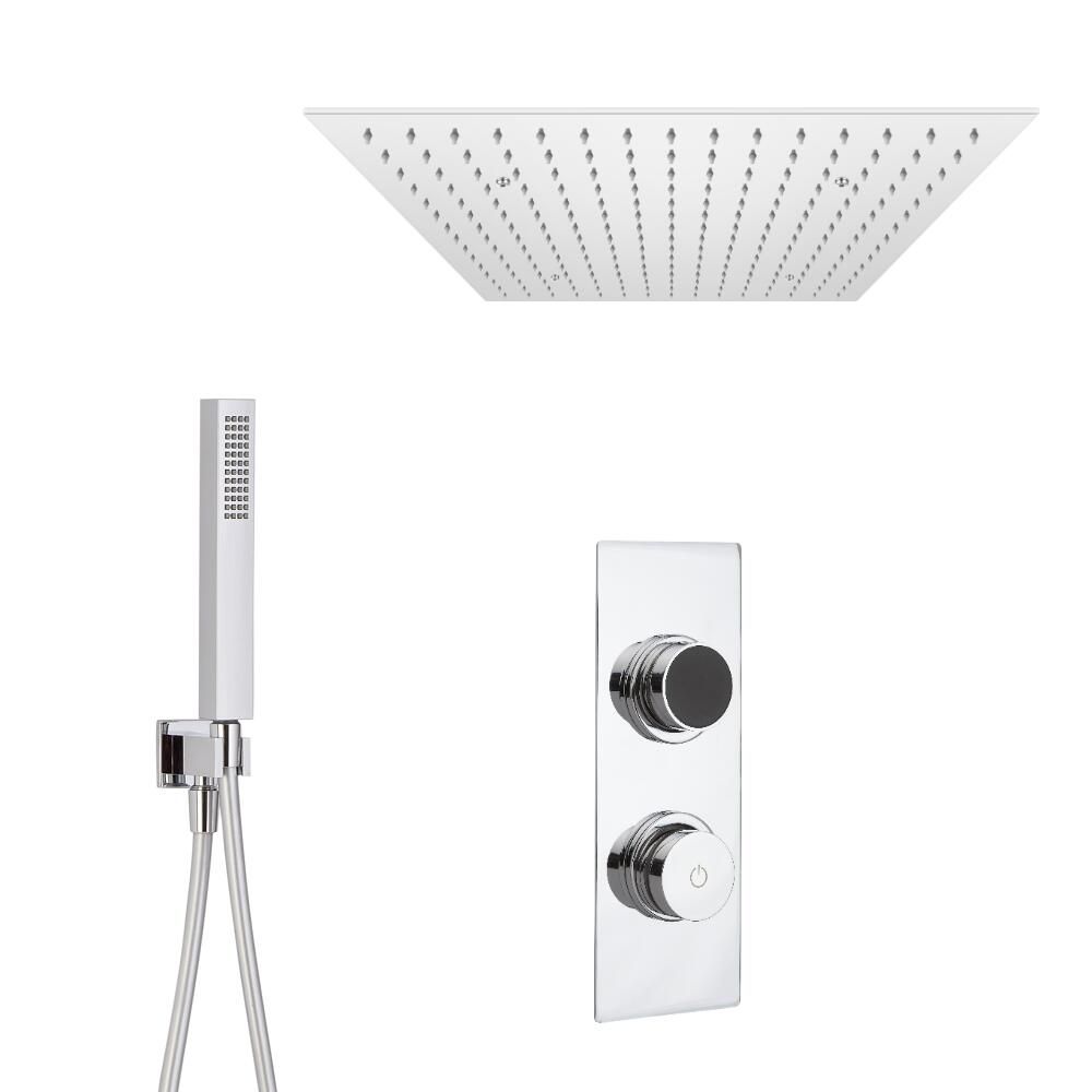 Bring the latest in showering technology to your bathroom and shower in style with the Milano Vis thermostatic shower system, complete with digital shower control, recessed rainfall shower head and hand shower kit.