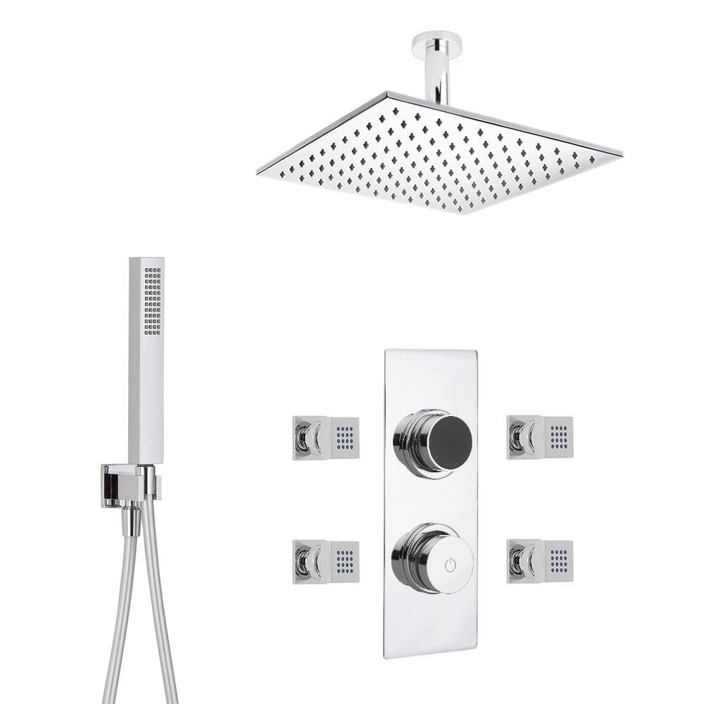 Milano Vis - Chrome Thermostatic Digital Shower with Square Shower Head, Hand Shower and Body Jets (3 Outlet)