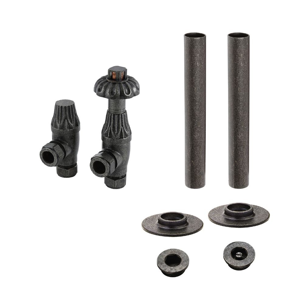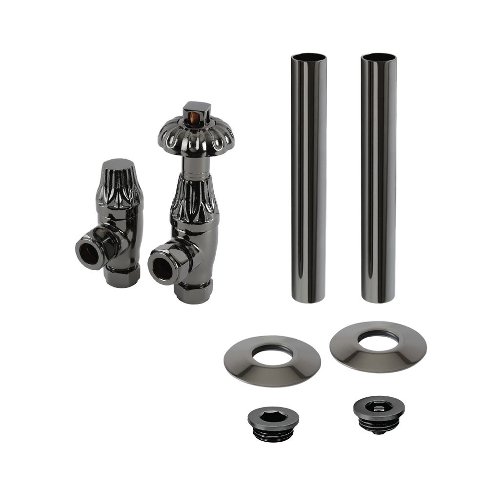 Milano Windsor - Antique Style Thermostatic Angled Radiator Valve and Pipe Sleeve Set - Choice of Finish